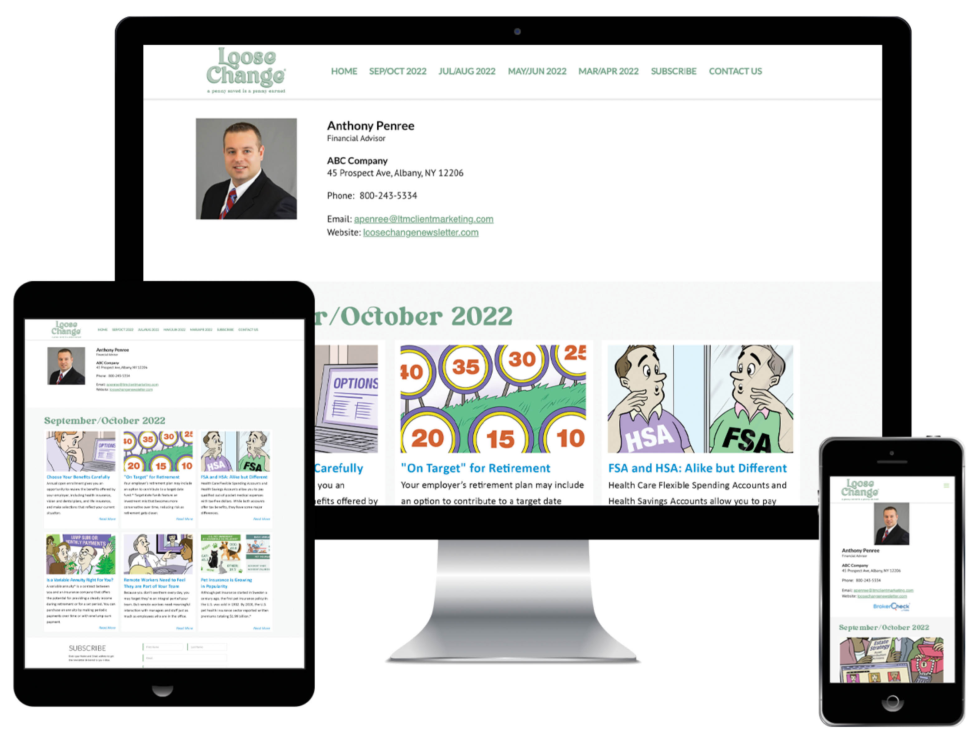 Loose Change is the perfect communication tool for engaging your clients and prospects all year with engaging, informative content and illustrations. Use with the Print Edition to complement the program, as any communication program is not complete without multi-channel touchpoints.
